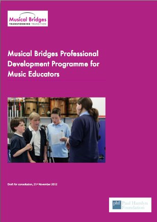 The 'Musical Bridges Programme' is a DIY professional develop kit for music educators, working together, to improve practice and environment for students moving from Primary to Secondary school.