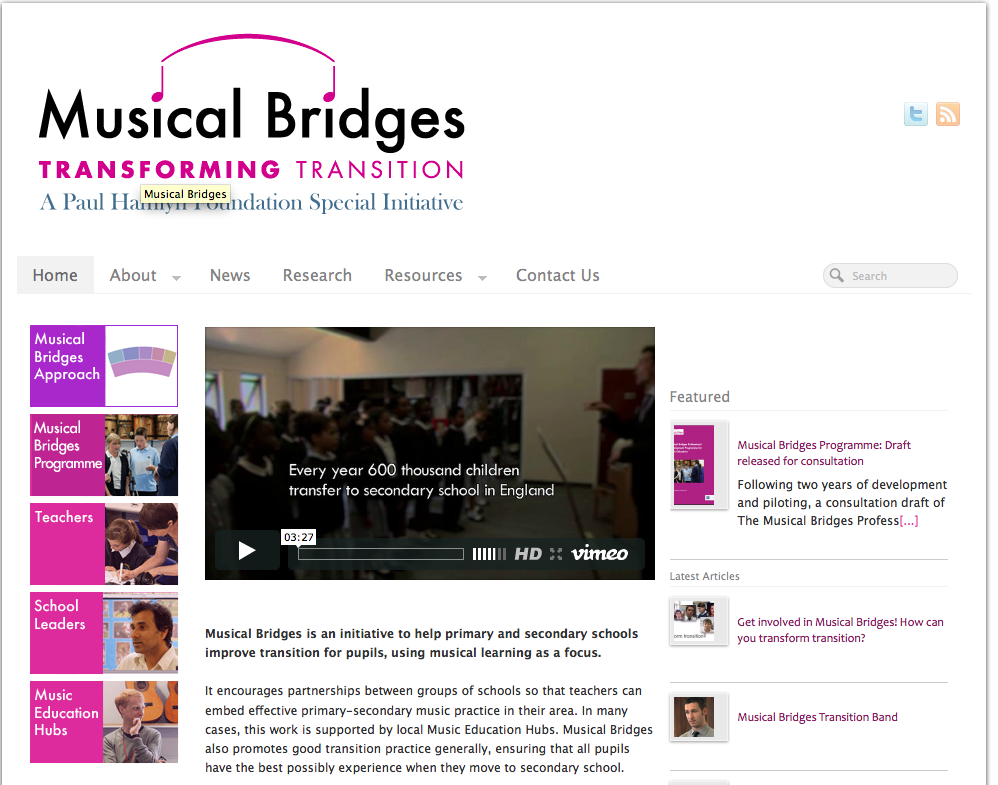 I've been involved with Musical Bridges since its inception, sitting on the steering group and representing Youth Music. In 2012 I have collated, organised and edited the initiative's catalogue of materials and redesigned and built a new website to house them.